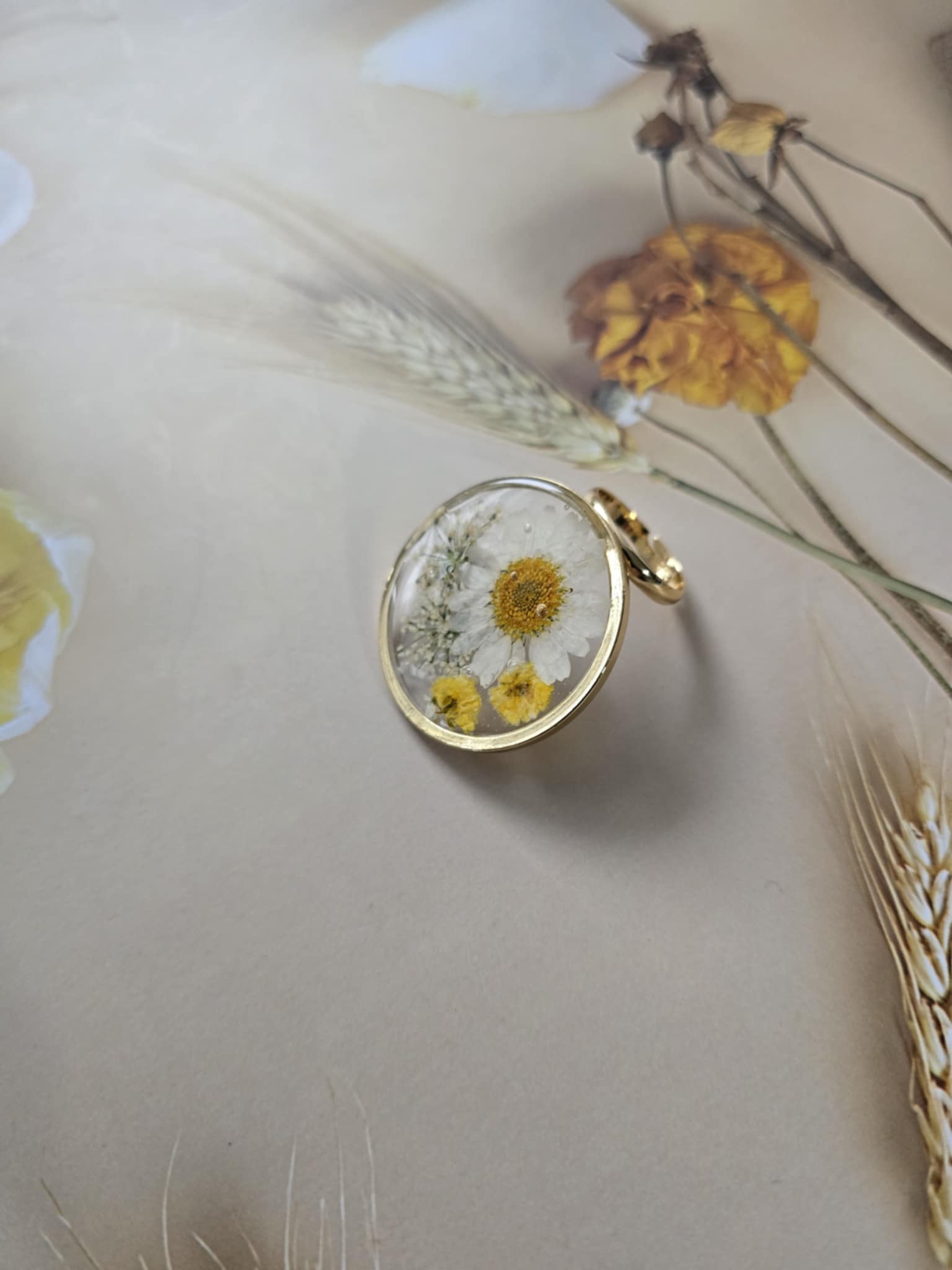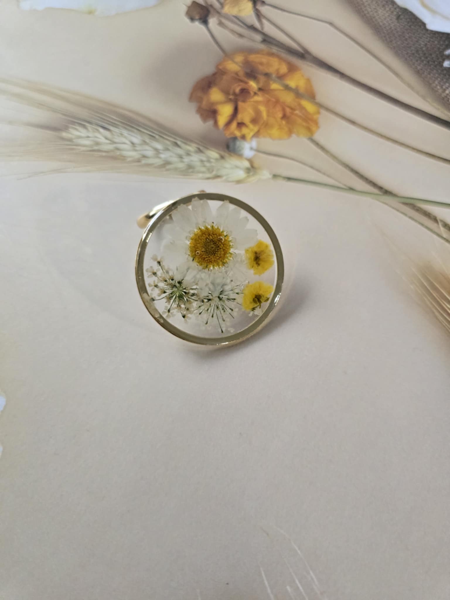 Sentez la beauté naturelle avec notre bague florale au naturel ! Fabriquée à la main avec des fleurs et des feuilles fraîches, chaque bague est unique. Choisissez une touche de la nature pour votre tenue et ressentez sa fraîcheur et son élégance à chaque instant.