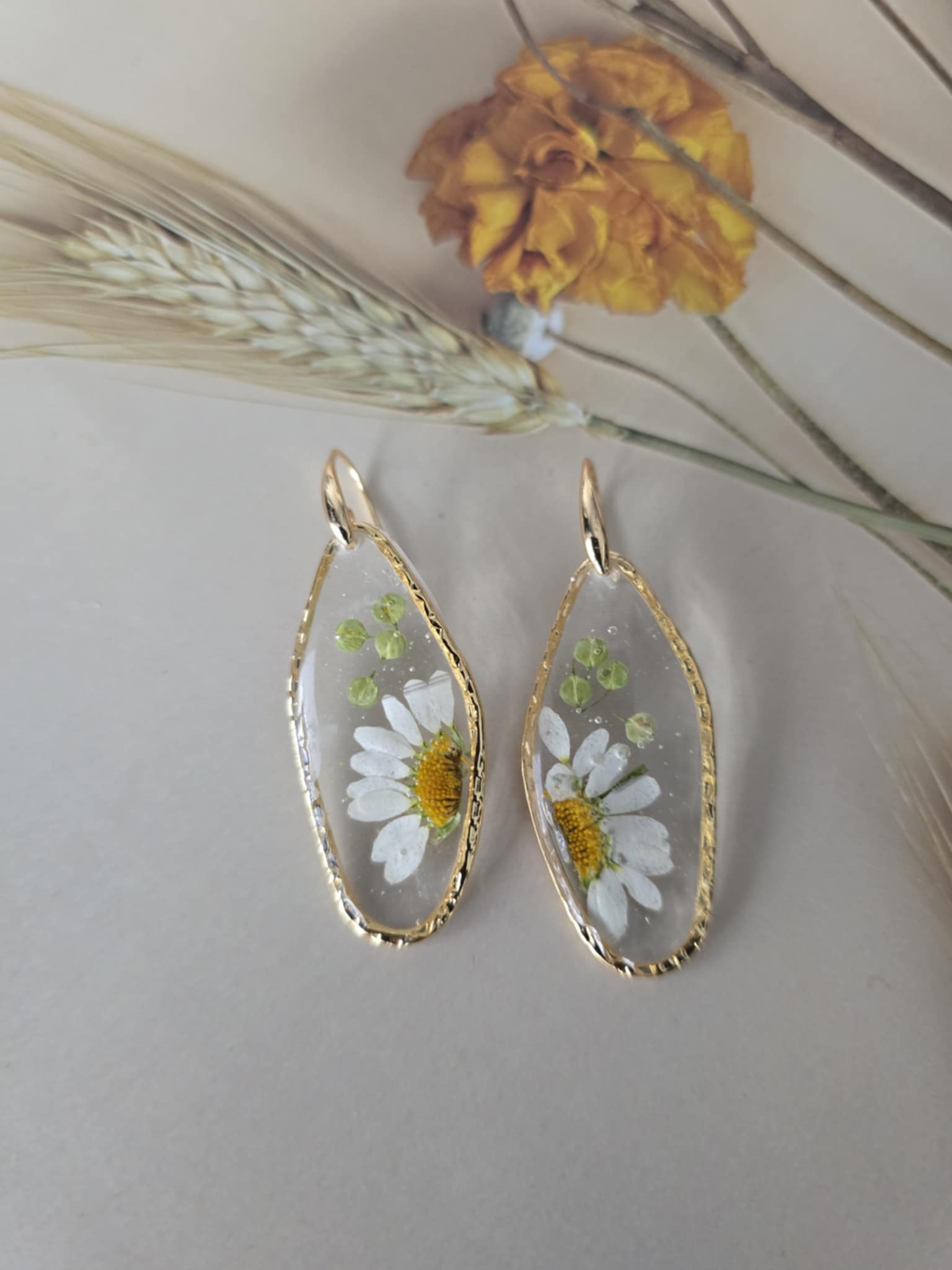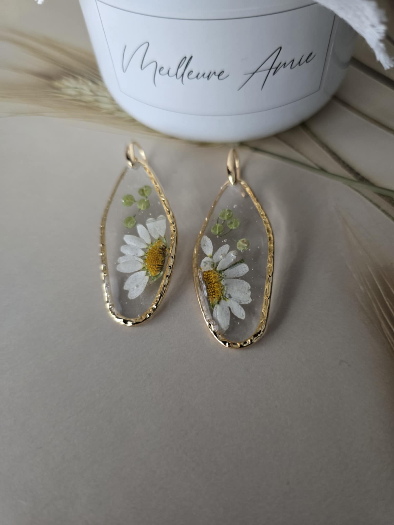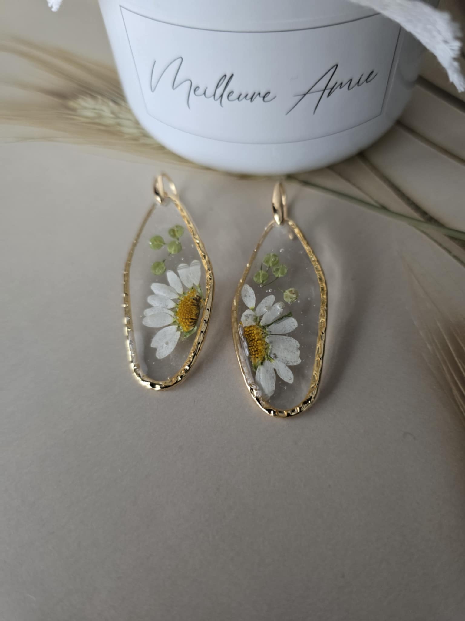 Découvrez l'élégance romantique des boucles d'oreilles marguerites charmantes ! Avec leur design délicat et leurs fleurs en relief, ces boucles d'oreilles ajoutent une touche de beauté à n'importe quelle tenue. Fabriquées avec soin pour un look intemporel, elles sont un choix parfait pour les occasions spéciales ou pour ajouter une touche de charme