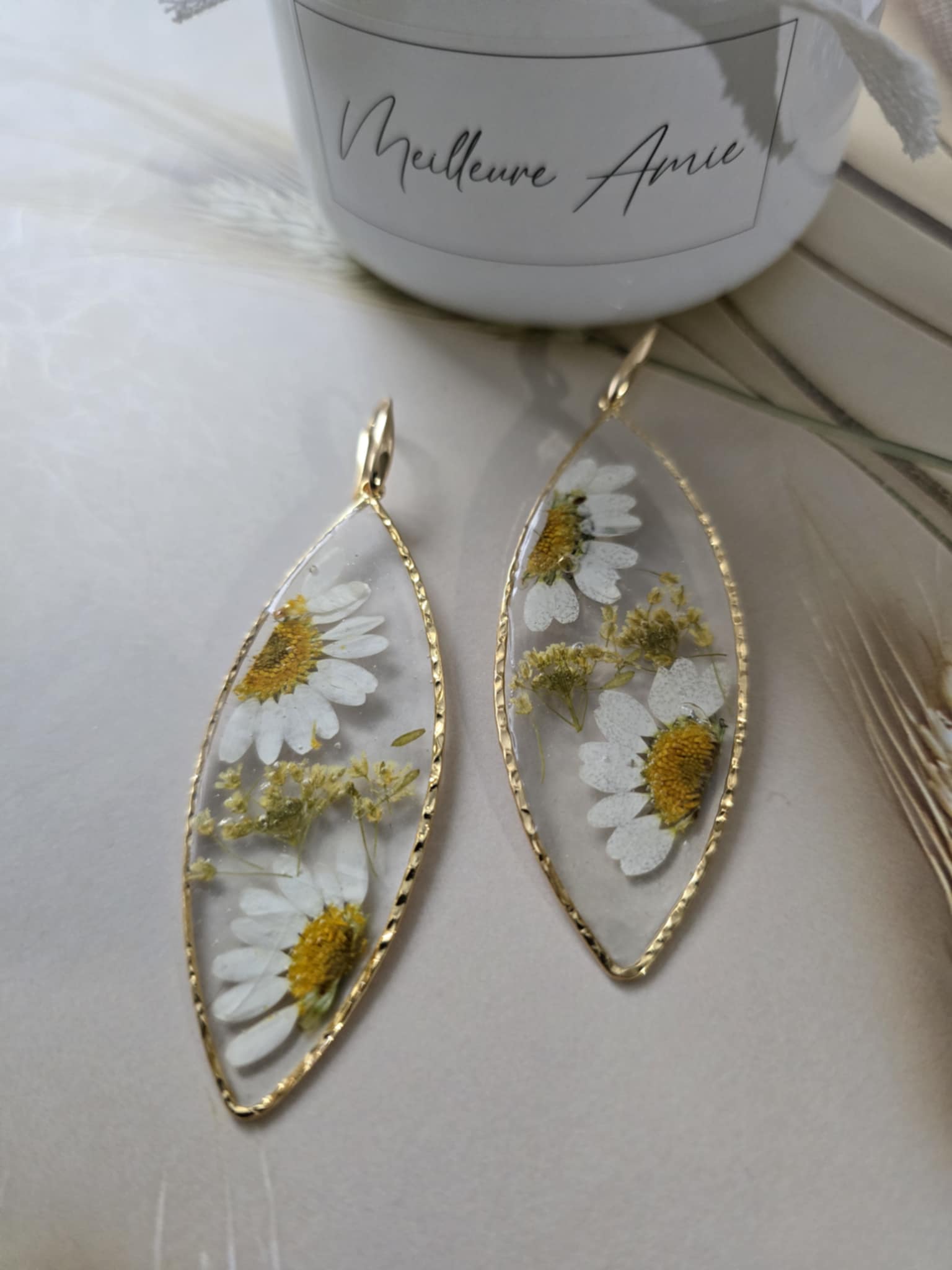 Sentez-vous le renouveau du printemps avec ces magnifiques boucles d'oreilles marguerites ! Fabriquées à la main avec amour, ces boucles d'oreilles ajoutent une touche florale charmante à votre tenue. Légères et confortables, elles sont parfaites pour ajouter une touche de couleur et de fraîcheur à votre style.