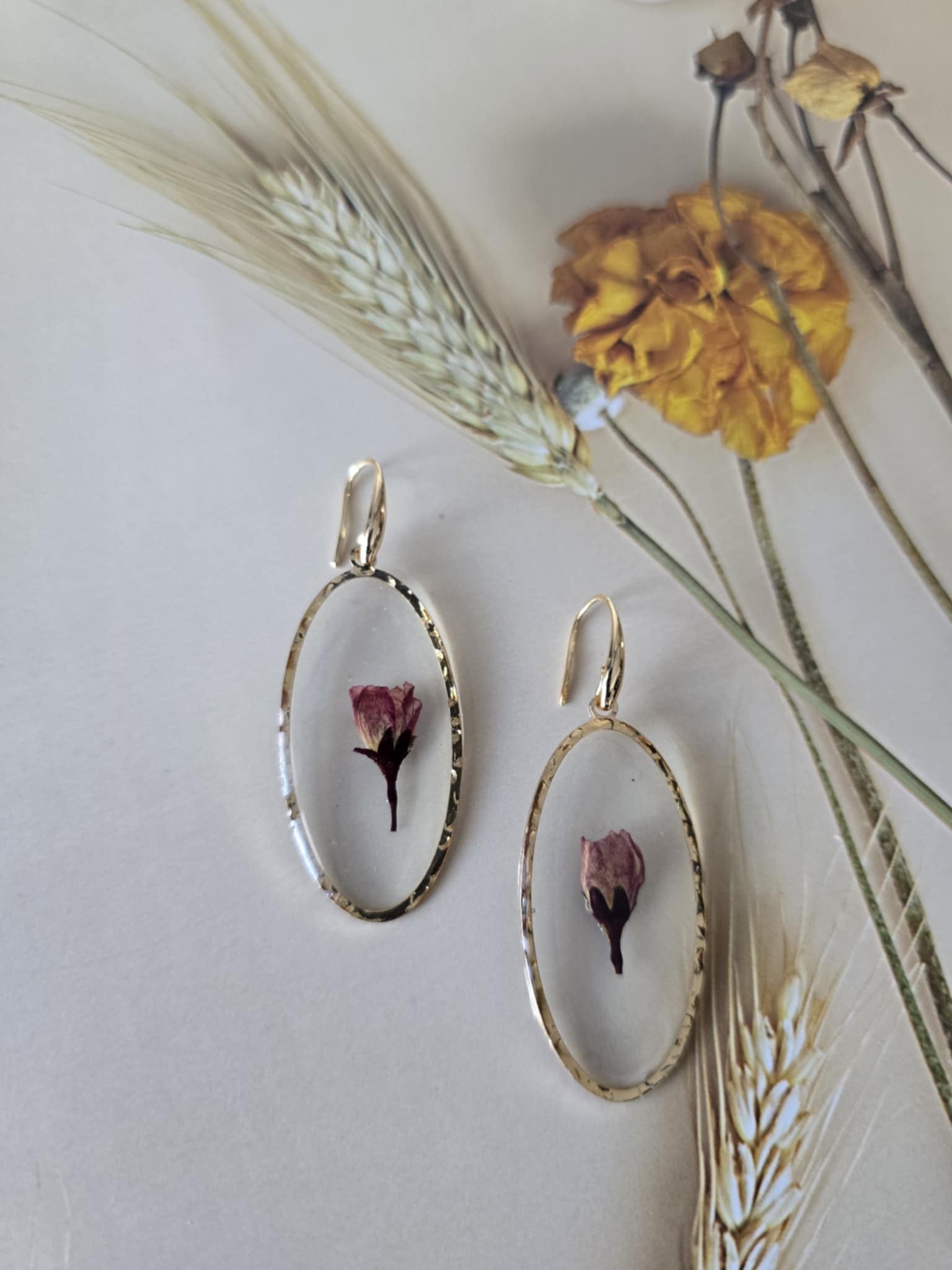 Entretien : bien qu'ils soient généralement durables, il est conseillé d'éviter un contact prolongé avec l'eau ou des produits chimiques pour préserver l'éclat des boucles d'oreilles et des fleurs.