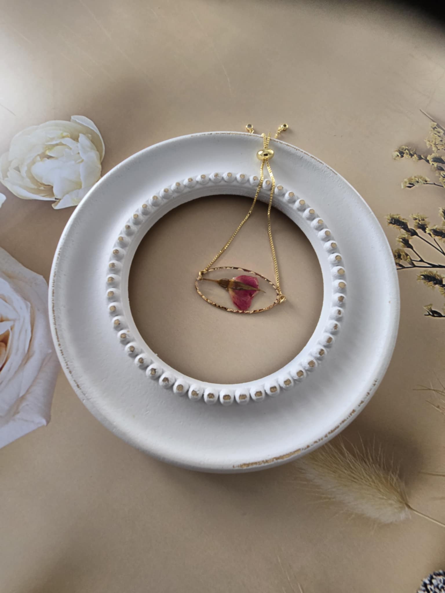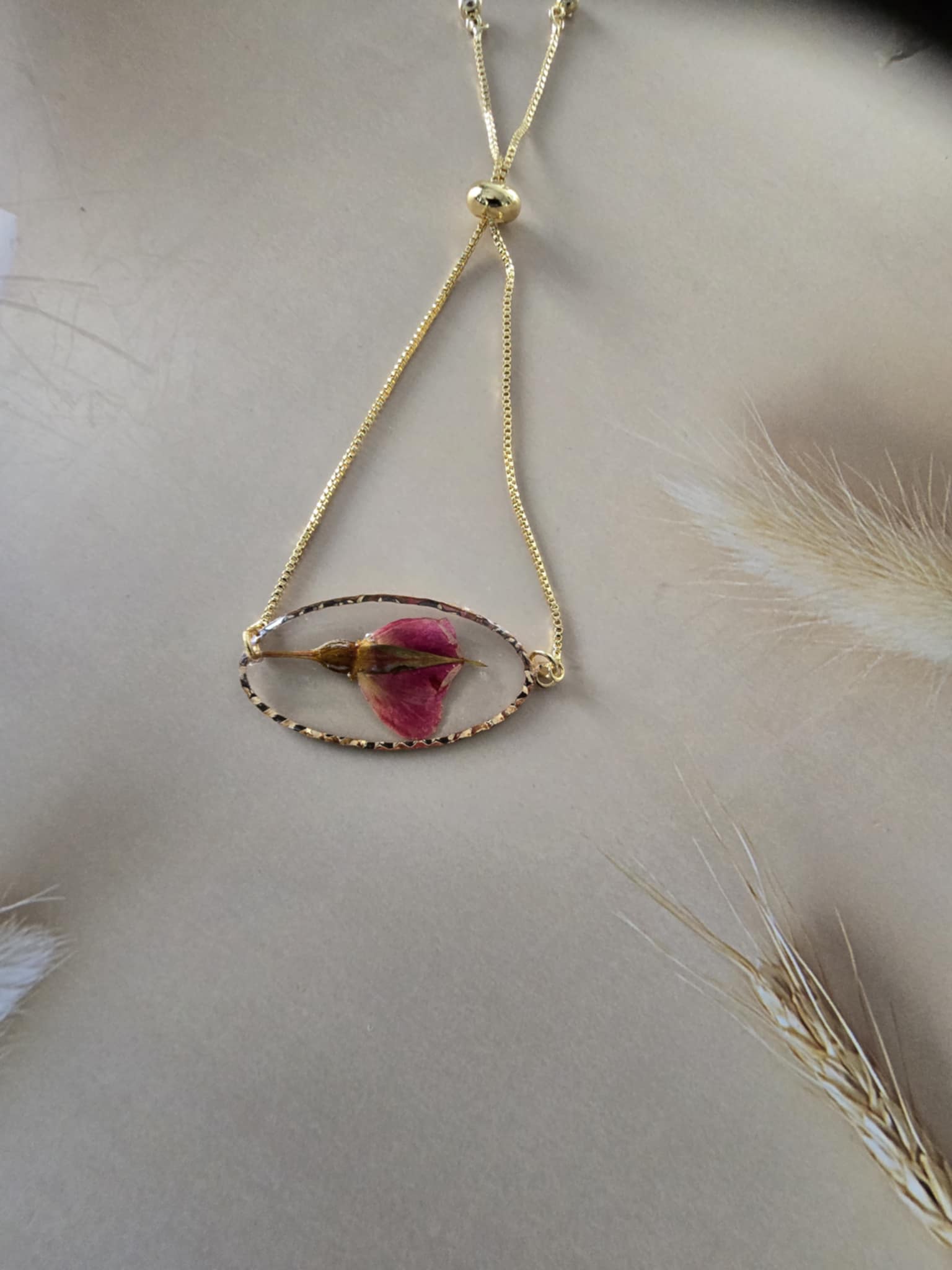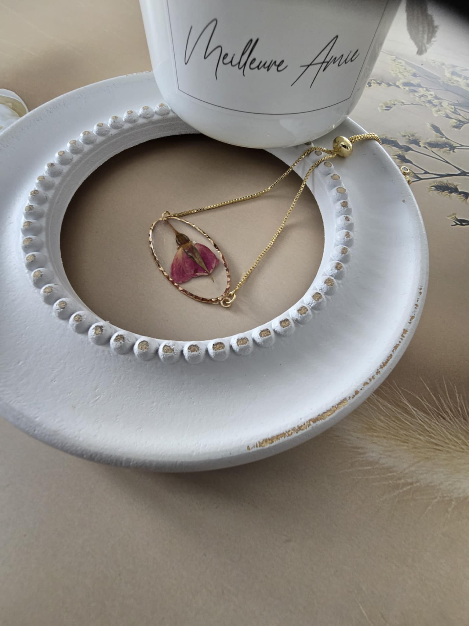 Caractéristiques : une chaîne plaquée or 14 carats ornée de bijoux en résine avec des fleurs naturelles est un accessoire élégant et unique. La résine permet de préserver la beauté des fleurs tout en les mettant en valeur. Ce type de bijou est souvent apprécié pour son aspect artisanal et sa capacité à capturer la nature.