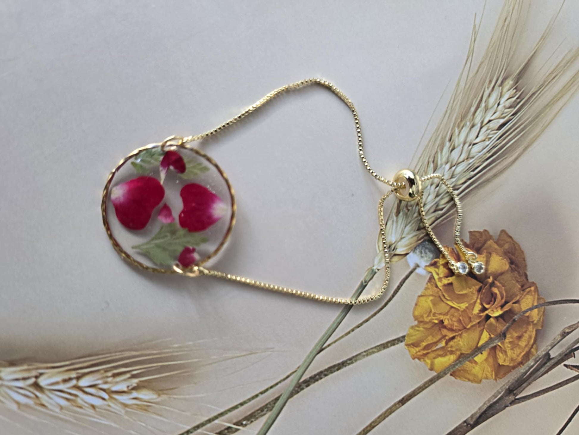 Caractéristiques : bracelets en résine contenant des fleurs naturelles.