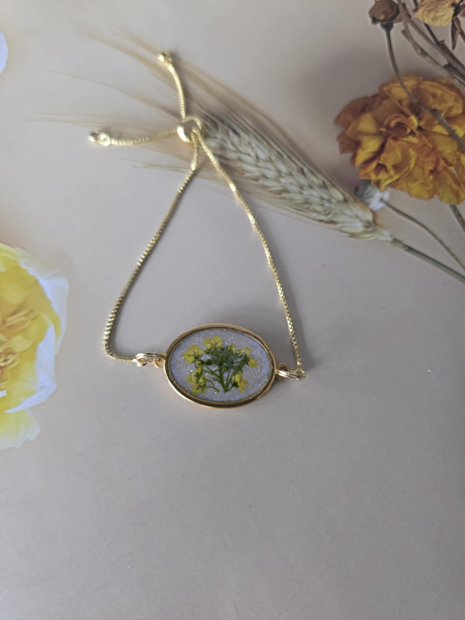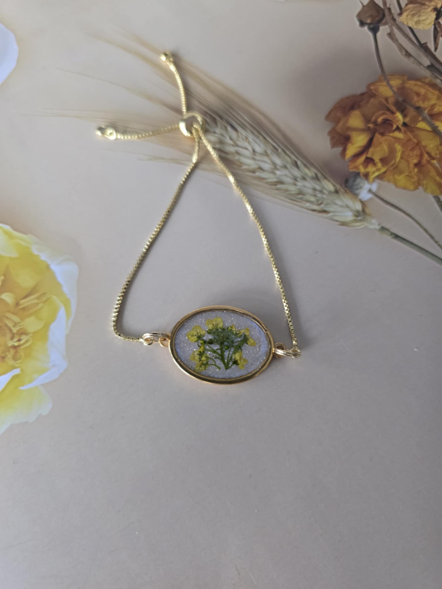 Plongez dans la beauté de la nature avec notre bracelet ajustable floral jaune. Le motif floral lumineux et ajustable offre un style unique et confortable. Découvrez l'éclat de la vie avec cet accessoire coloré et élégant. Idéal pour ajouter une touche de fraîcheur à n'importe quelle tenue.