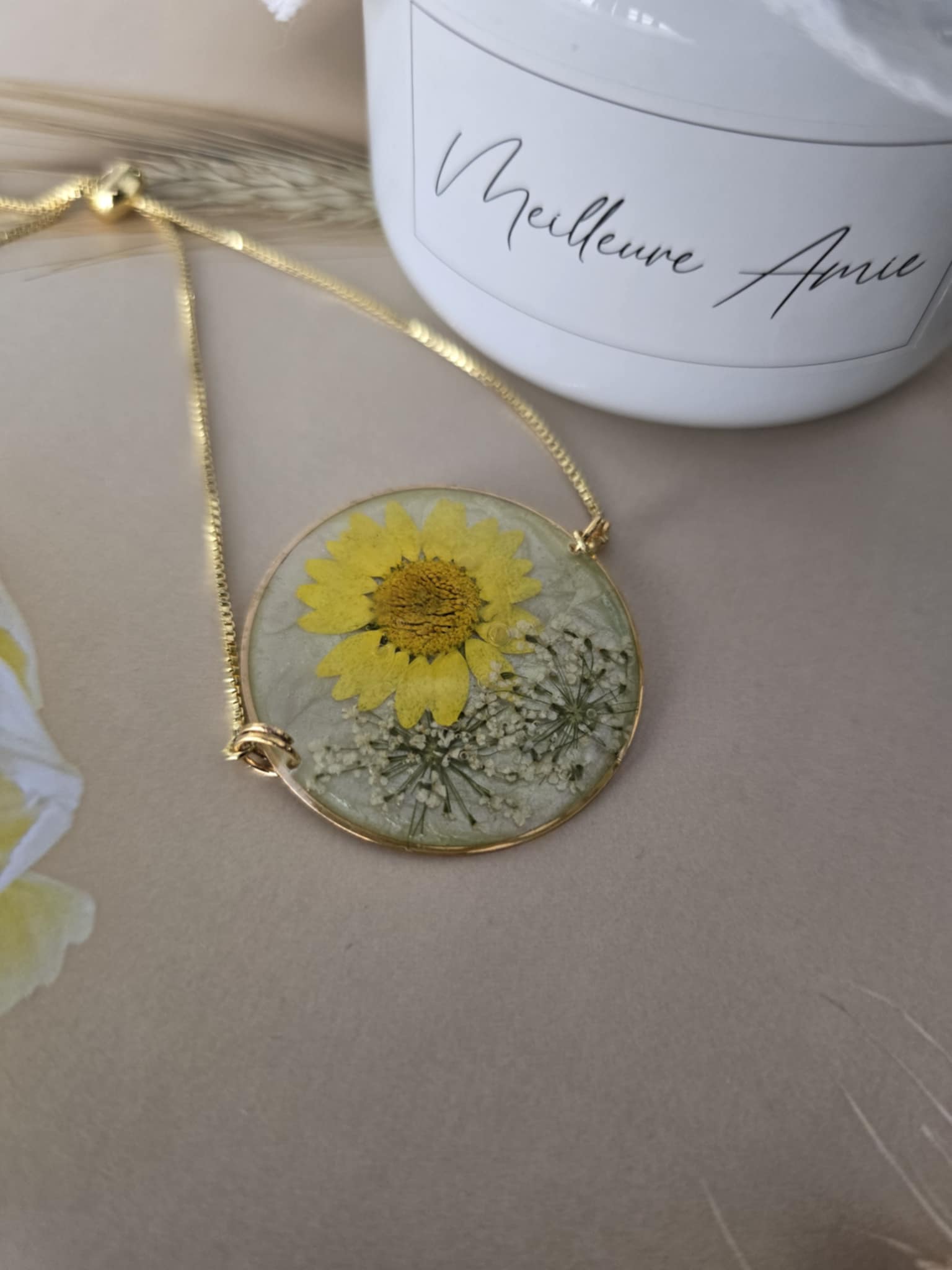 Entretien : bien qu'ils soient généralement durables, il est conseillé d'éviter un contact prolongé avec l'eau ou des produits chimiques pour préserver l'éclat de la chaîne et des fleurs.