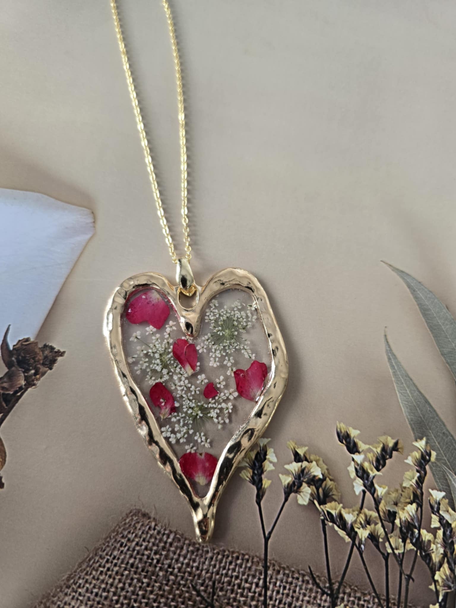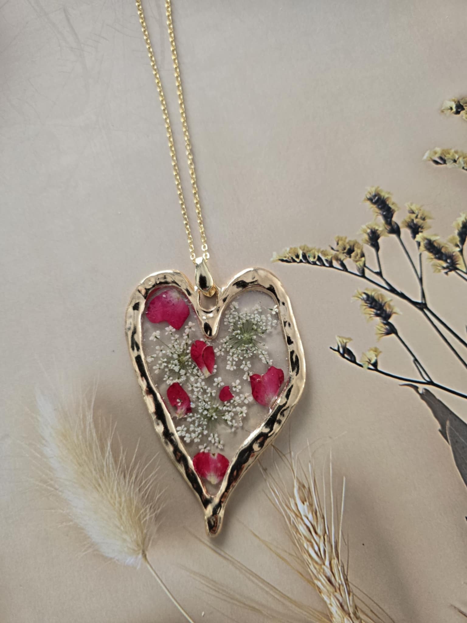 Caractéristiques : une chaîne plaqué or 14 carats ornée de bijoux en résine avec des fleurs naturelles est un accessoire élégant et unique. La résine permet de préserver la beauté des fleurs tout en les mettant en valeur. Ce type de bijou est souvent apprécié pour son aspect artisanal et sa capacité à capturer la nature.