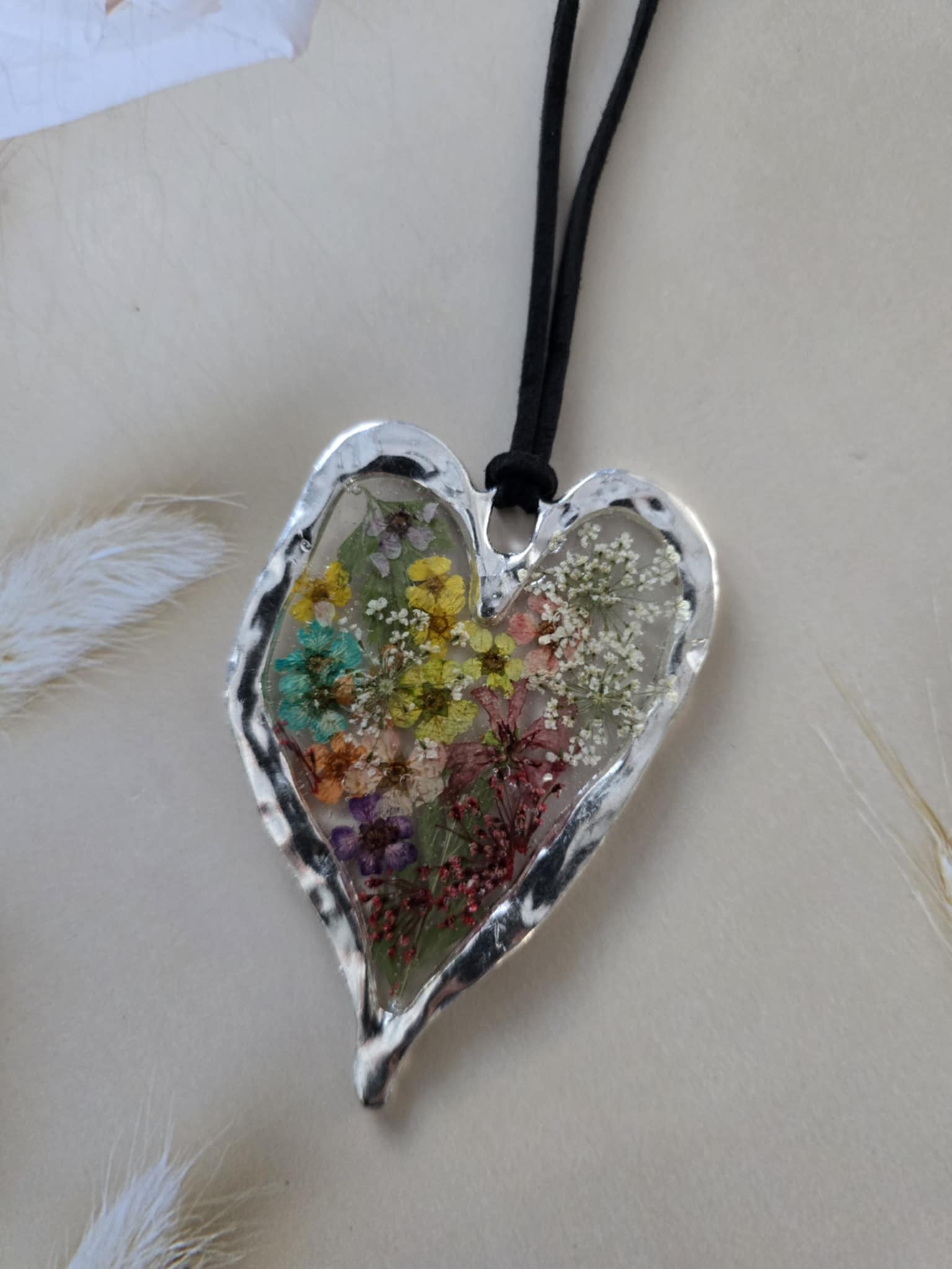 pendentif argenté coloré floral