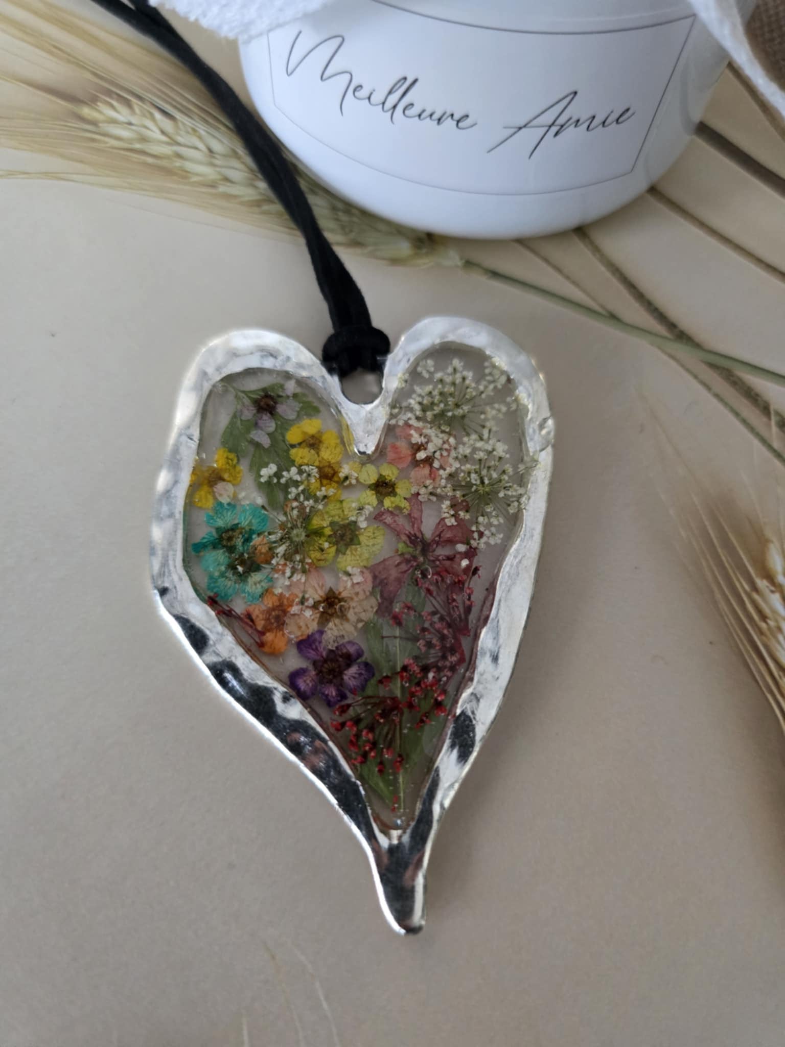 Spécifications : pendentif argenté coloré avec cordon noir ajustable, pendentif 80 mm par 53 mm.