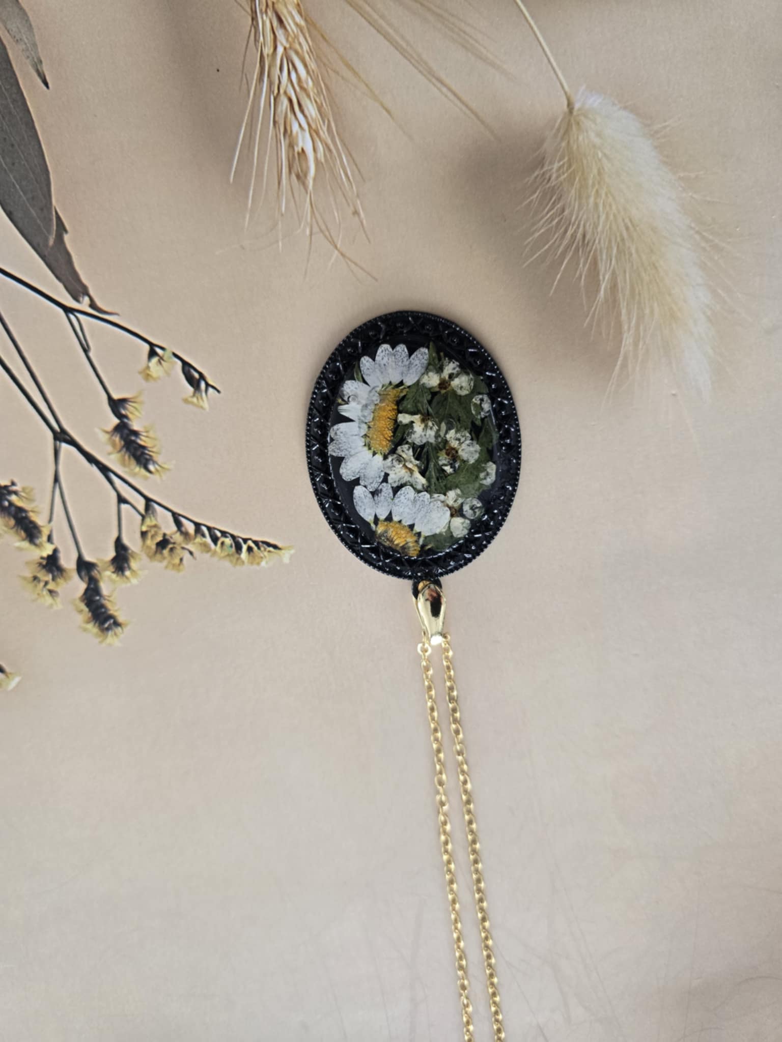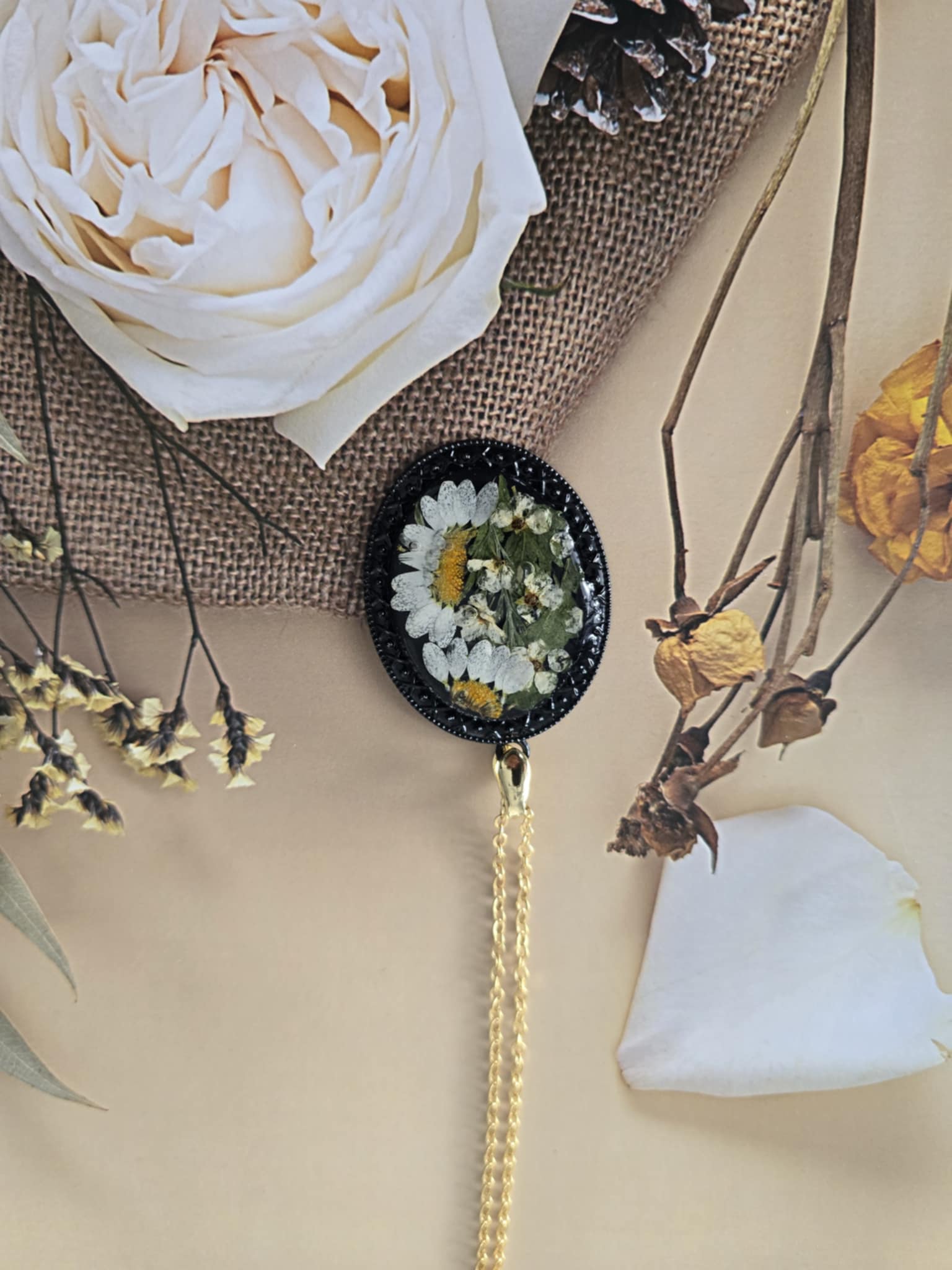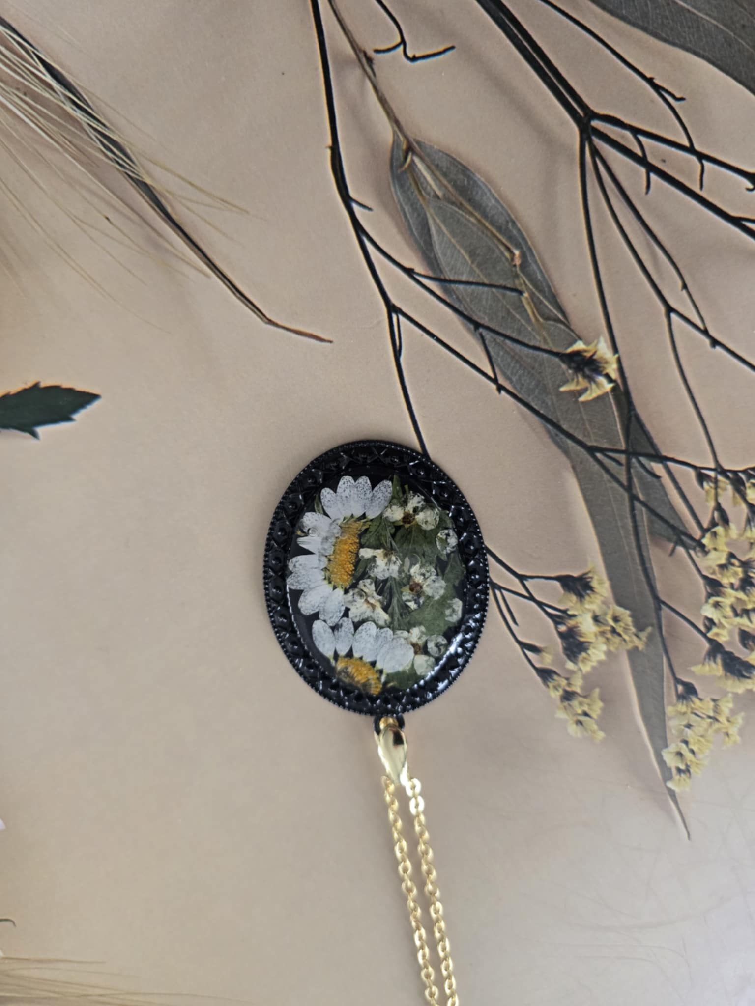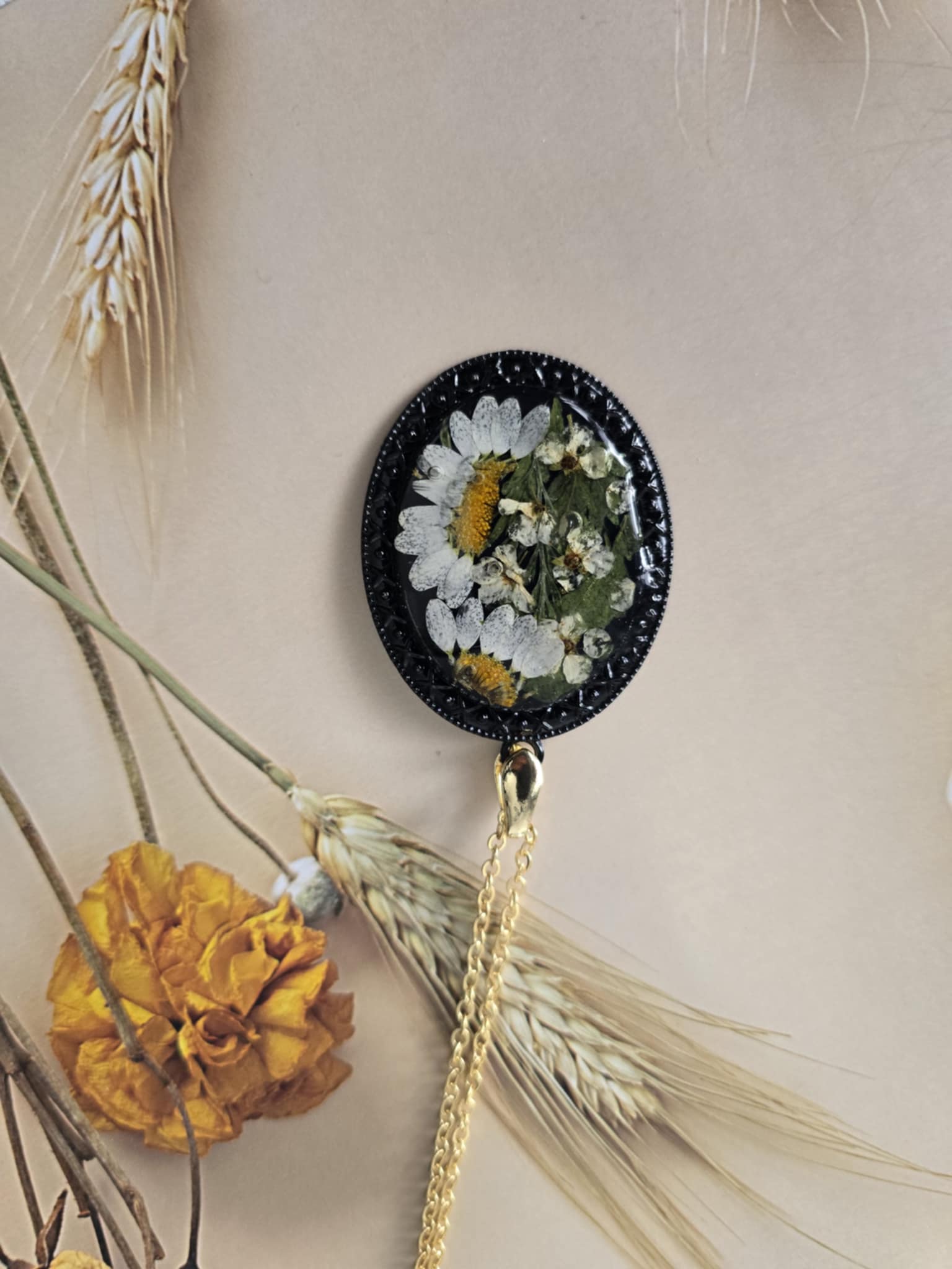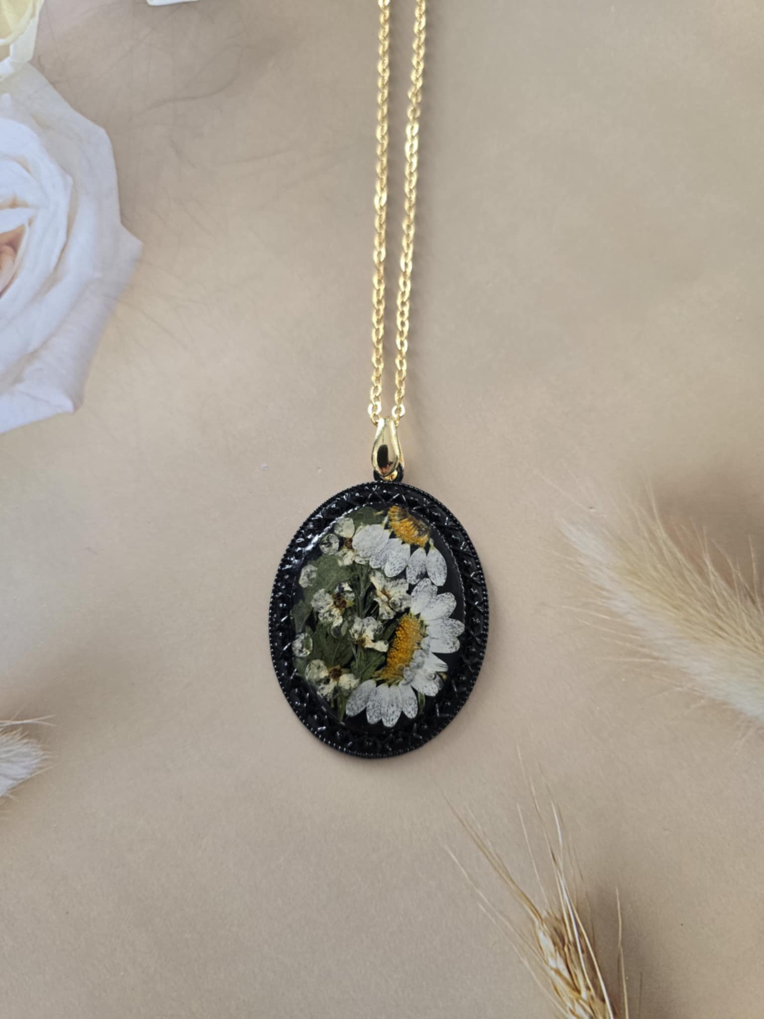 Caractéristiques : une chaîne plaquée or 14 carats ornée de bijoux en résine avec des fleurs naturelles est un accessoire élégant et unique. La résine permet de préserver la beauté des fleurs tout en les mettant en valeur. Ce type de bijou est souvent apprécié pour son aspect artisanal et sa capacité à capturer la nature.