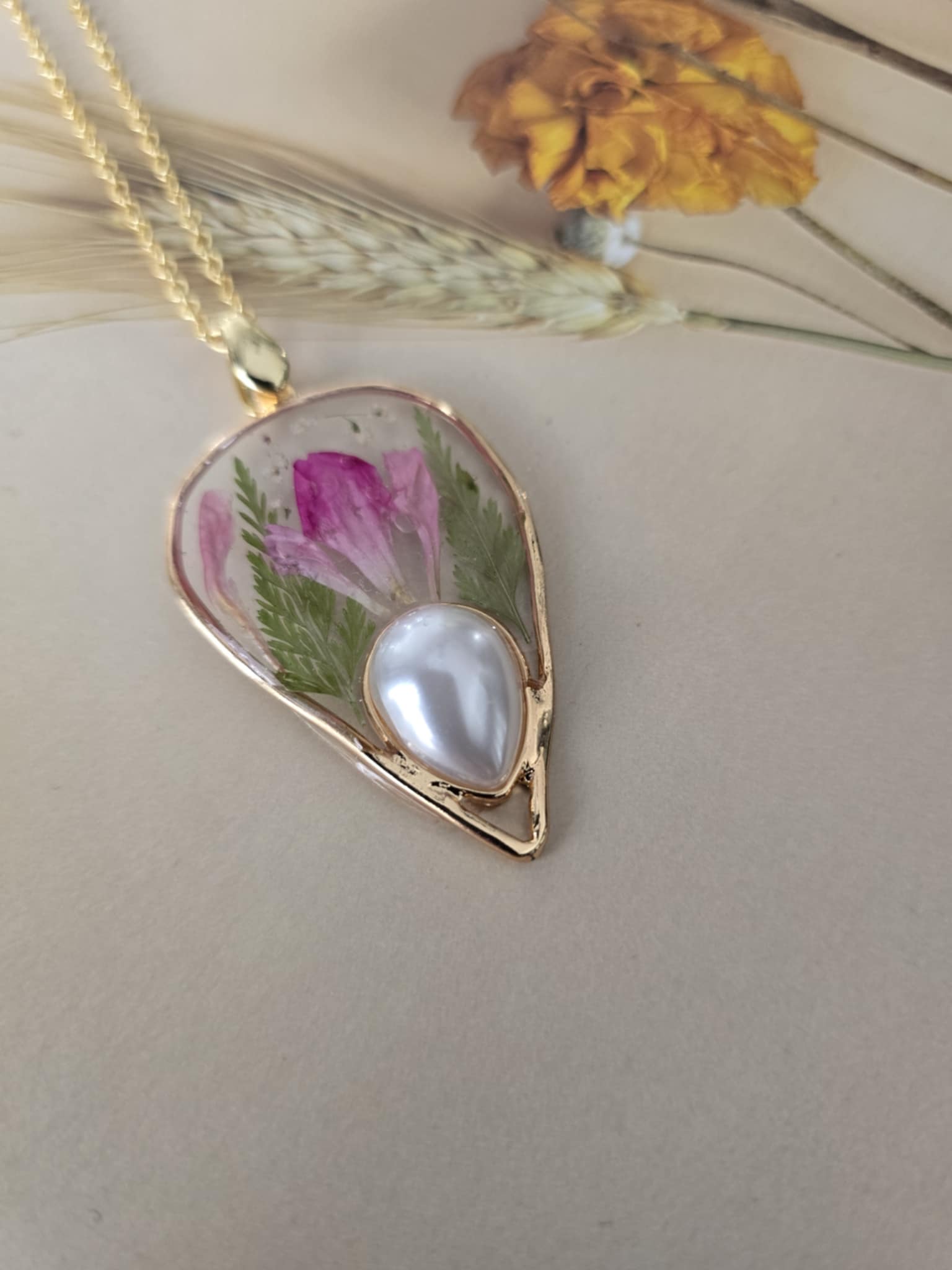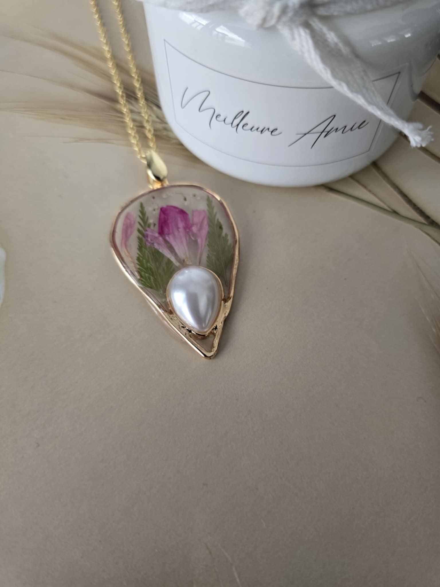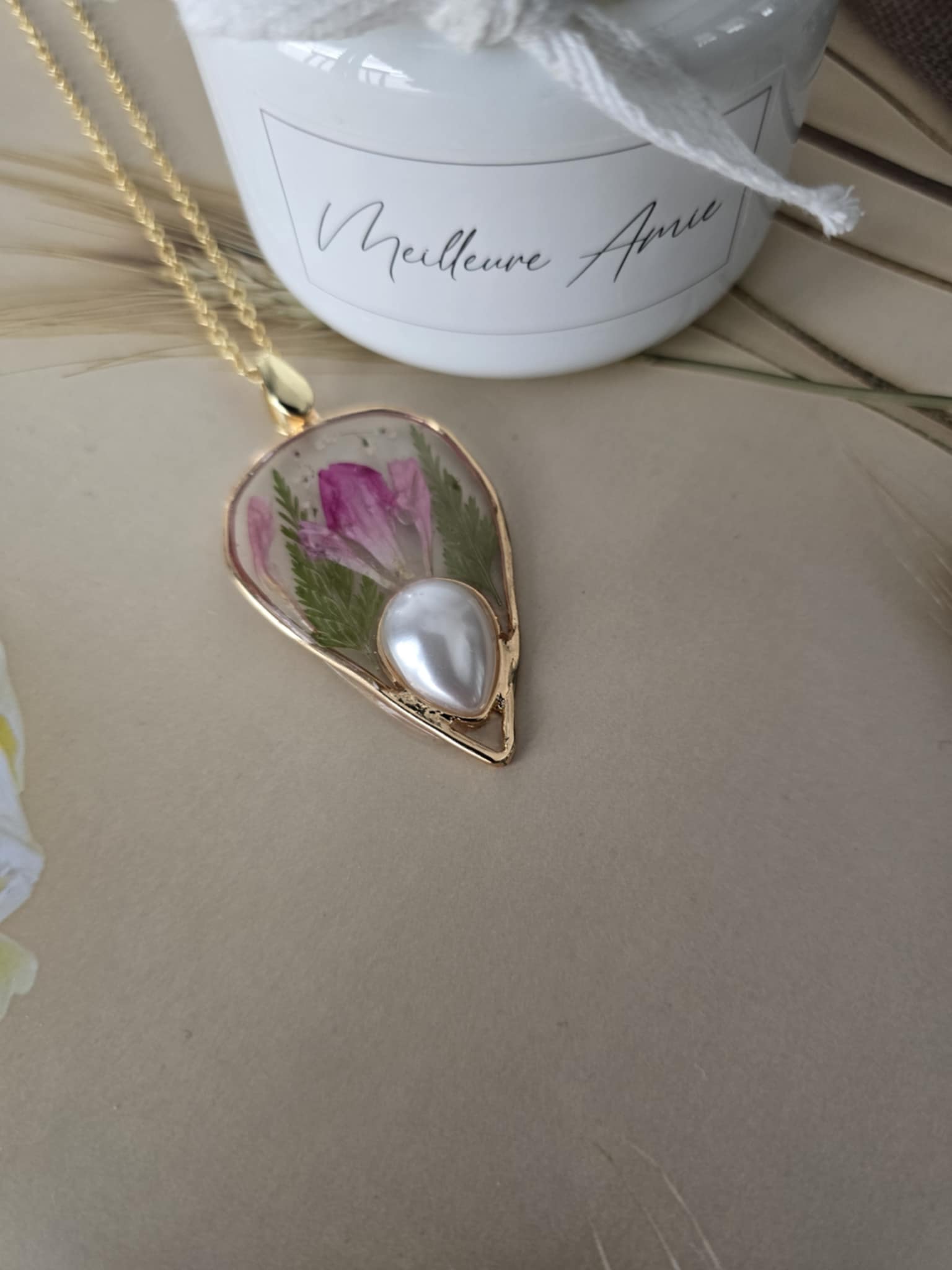 Caractéristiques : une chaîne plaquée or 14 carats ornée de bijoux en résine avec des fleurs naturelles est un accessoire élégant et unique. La résine permet de préserver la beauté des fleurs tout en les mettant en valeur. Ce type de bijou est souvent apprécié pour son aspect artisanal et sa capacité à capturer la nature.