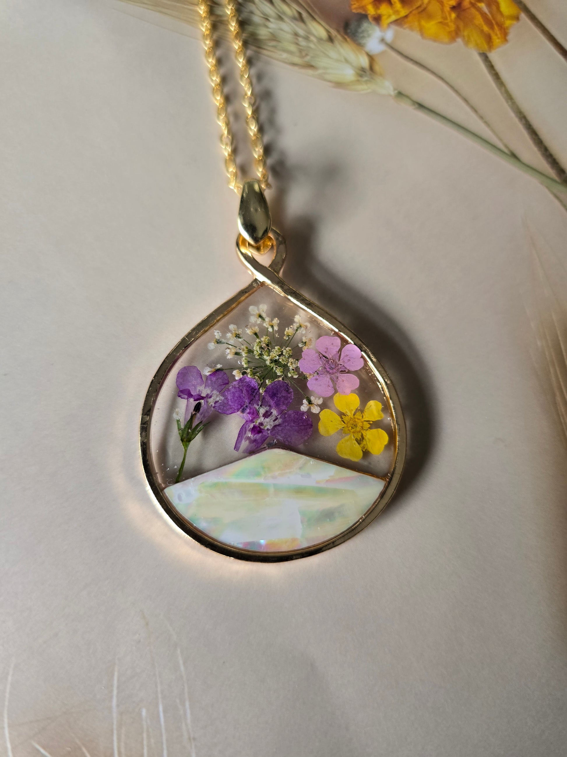 Spécifications : une chaîne plaquée or 14 k bijoux contenant des fleurs naturelles est un accessoire élégant et unique.