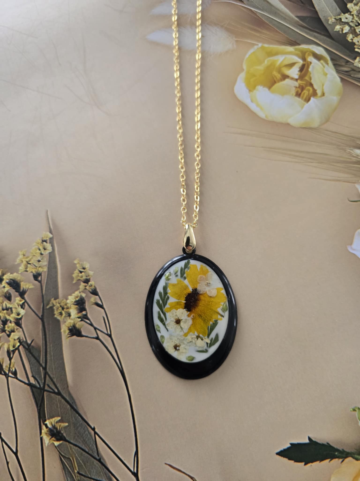 Caractéristiques : une chaîne plaquée or 14 carats ornée de bijoux en résine avec des fleurs naturelles est un accessoire élégant et unique. La résine permet de préserver la beauté des fleurs tout en les mettant en valeur. Ce type de bijou est souvent apprécié pour son aspect artisanal et sa capacité à capturer la nature.