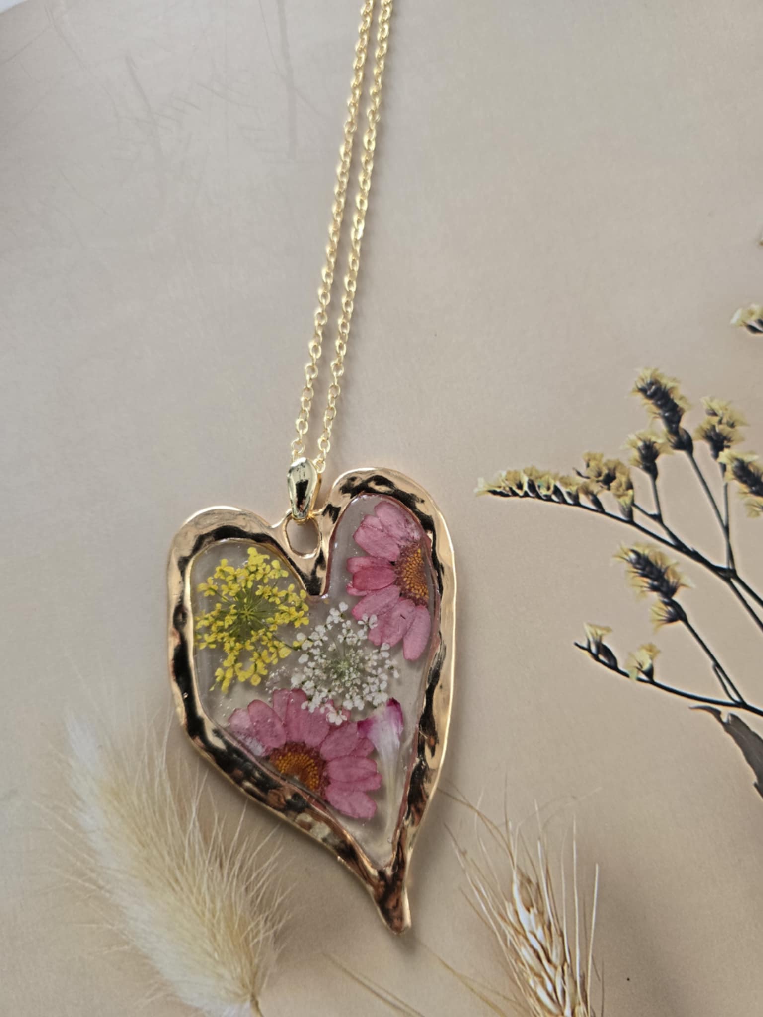 Caractéristiques : une chaîne plaquée or 14 carats ornée de bijoux en résine avec des fleurs naturelles est un accessoire élégant et unique. La résine permet de préserver la beauté des fleurs tout en les mettant en valeur. Ce type de bijou est souvent apprécié pour son aspect artisanal et sa capacité à capturer la nature.