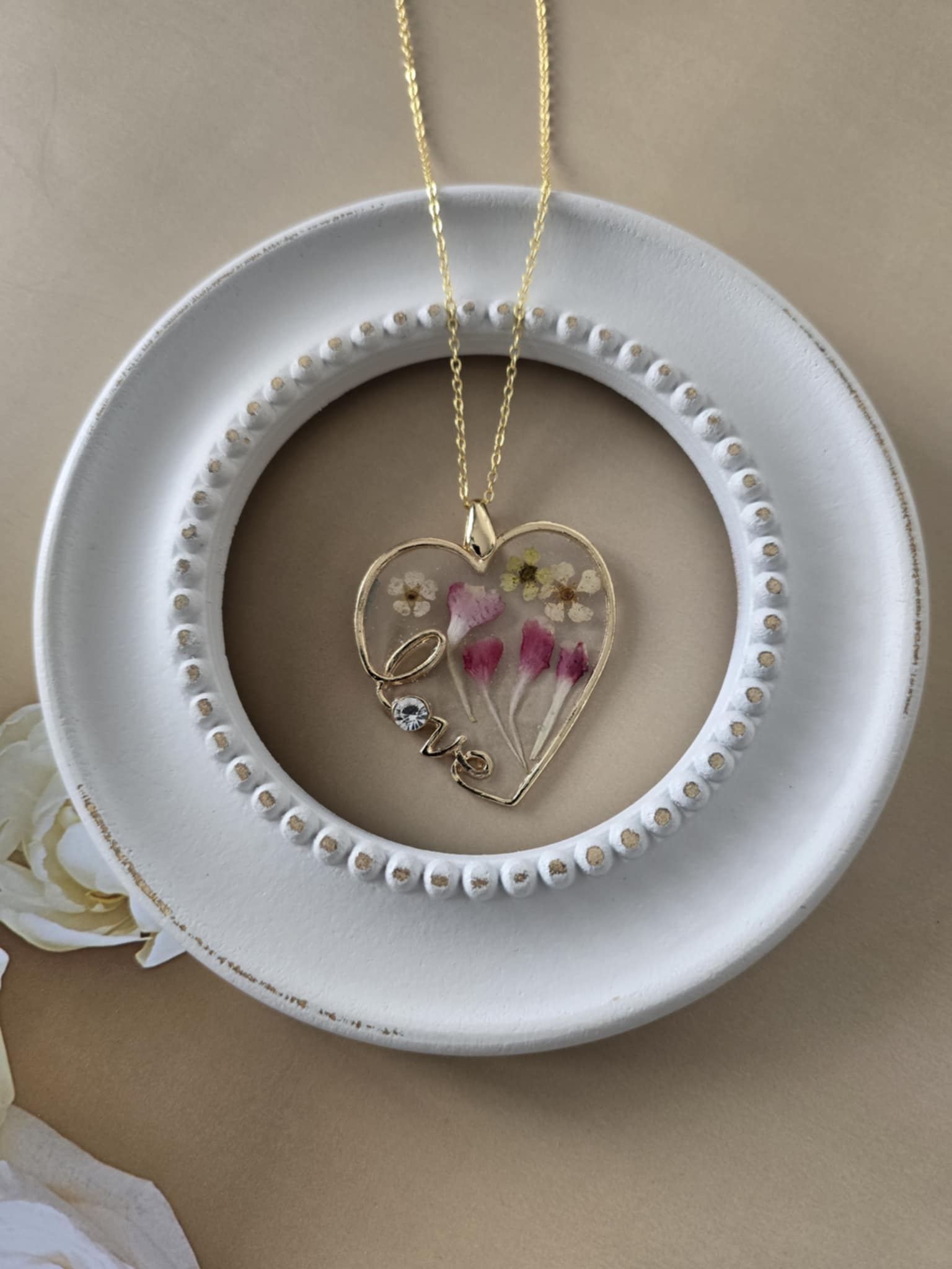Caractéristiques : une chaîne plaquée or 14 carats ornée de bijoux en résine avec des fleurs naturelles est un accessoire élégant et unique. La résine permet de préserver la beauté des fleurs tout en les mettant en valeur. Ce type de bijou est souvent apprécié pour son aspect artisanal et sa capacité à capturer la nature.