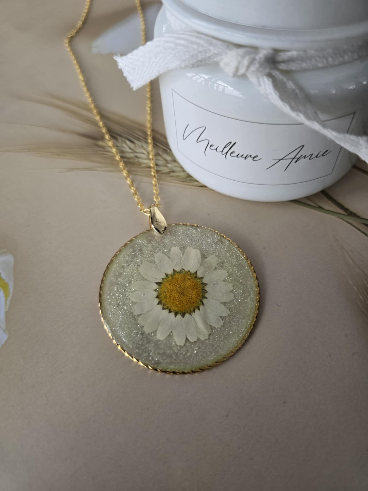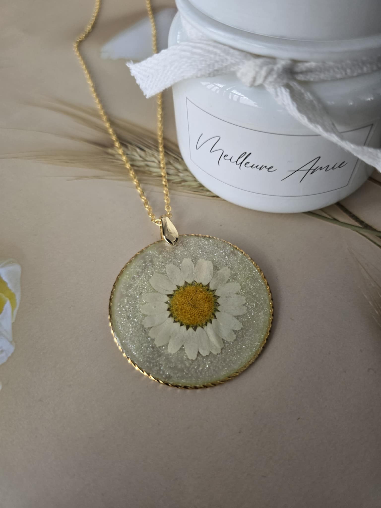 Pendentif marguerite au naturel
