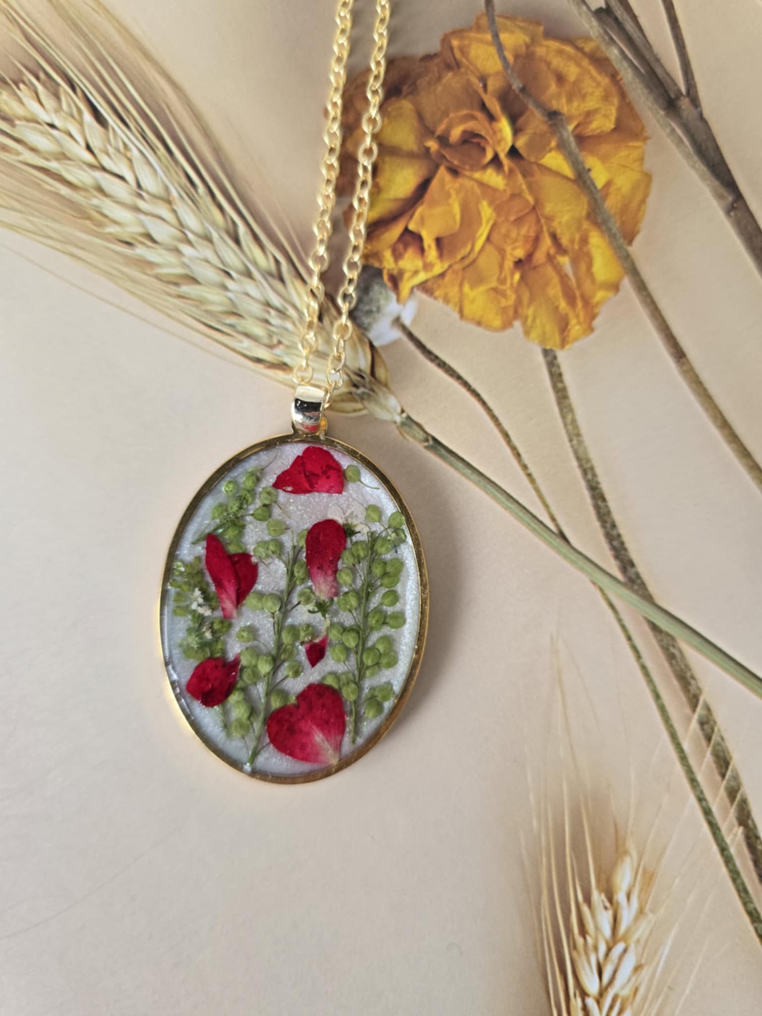 Caractéristiques : une chaîne plaquée or 14 carats ornée de bijoux en résine avec des fleurs naturelles est un accessoire élégant et unique. La résine permet de préserver la beauté des fleurs tout en les mettant en valeur. Ce type de bijou est souvent apprécié pour son aspect artisanal et sa capacité à capturer la nature.