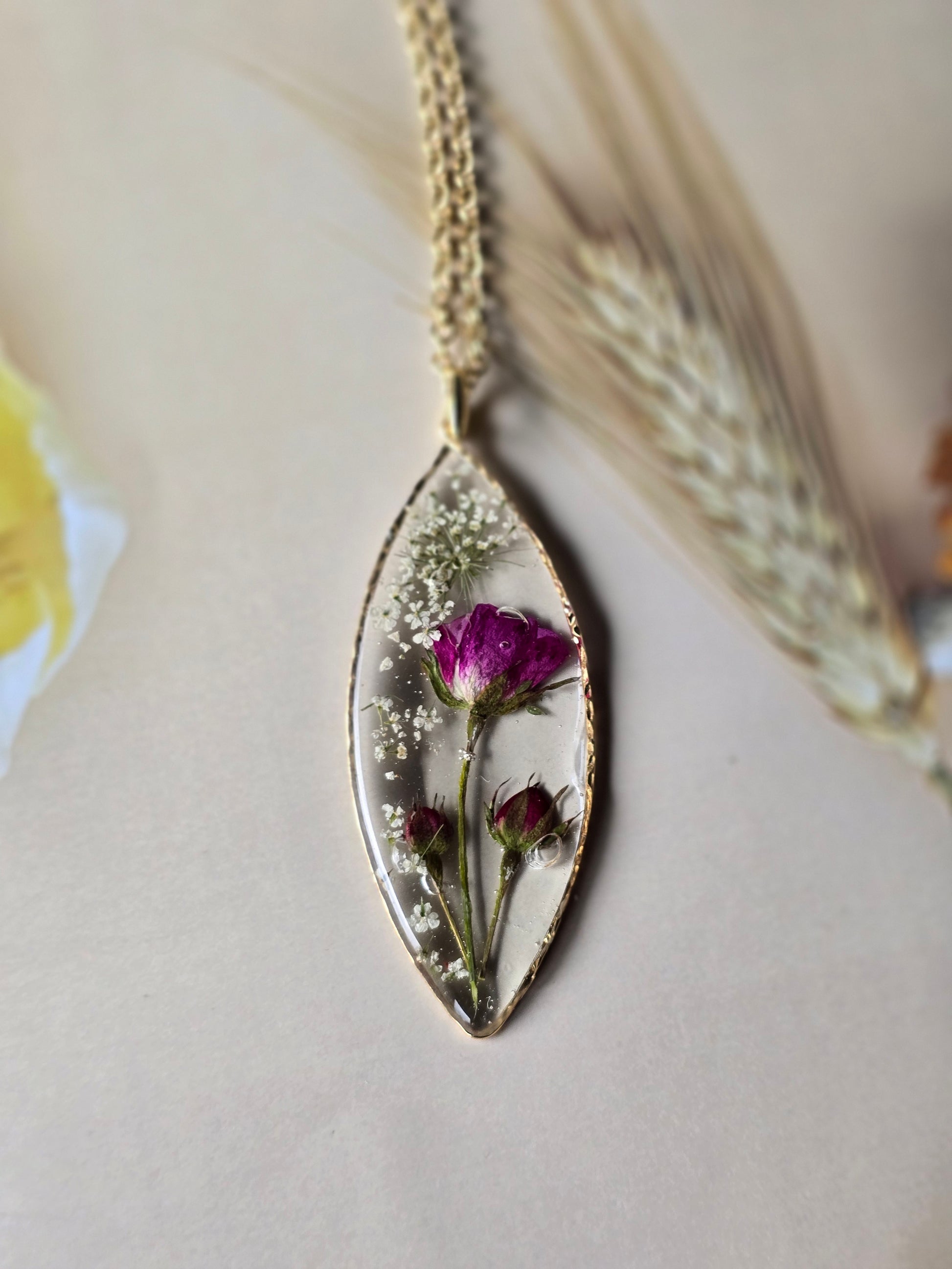 Spécifications : une chaîne plaquée 14 k, des bijoux contenant des fleurs naturelles est un accessoire élégant et unique, ce qui leur confère une apparence délicate et artistique.