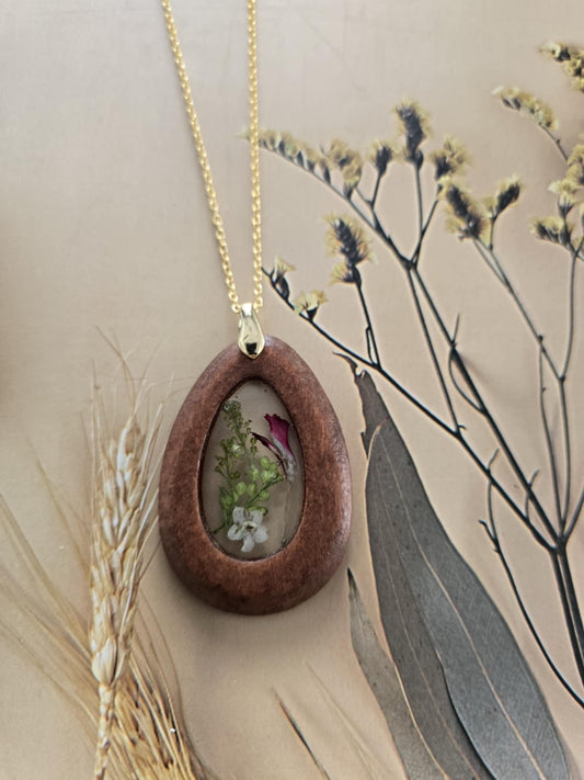 Pendentif boisé floral naturel